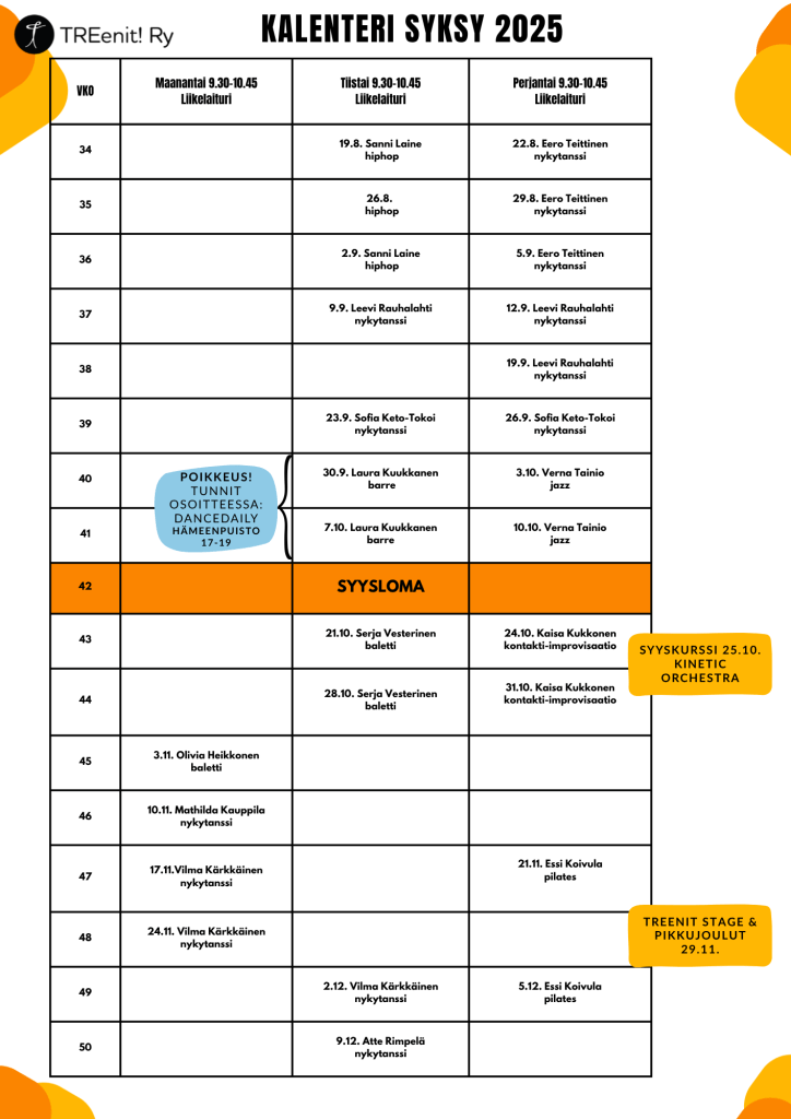Syyskausi starttaa 19.8., tervetuloa tunneille!